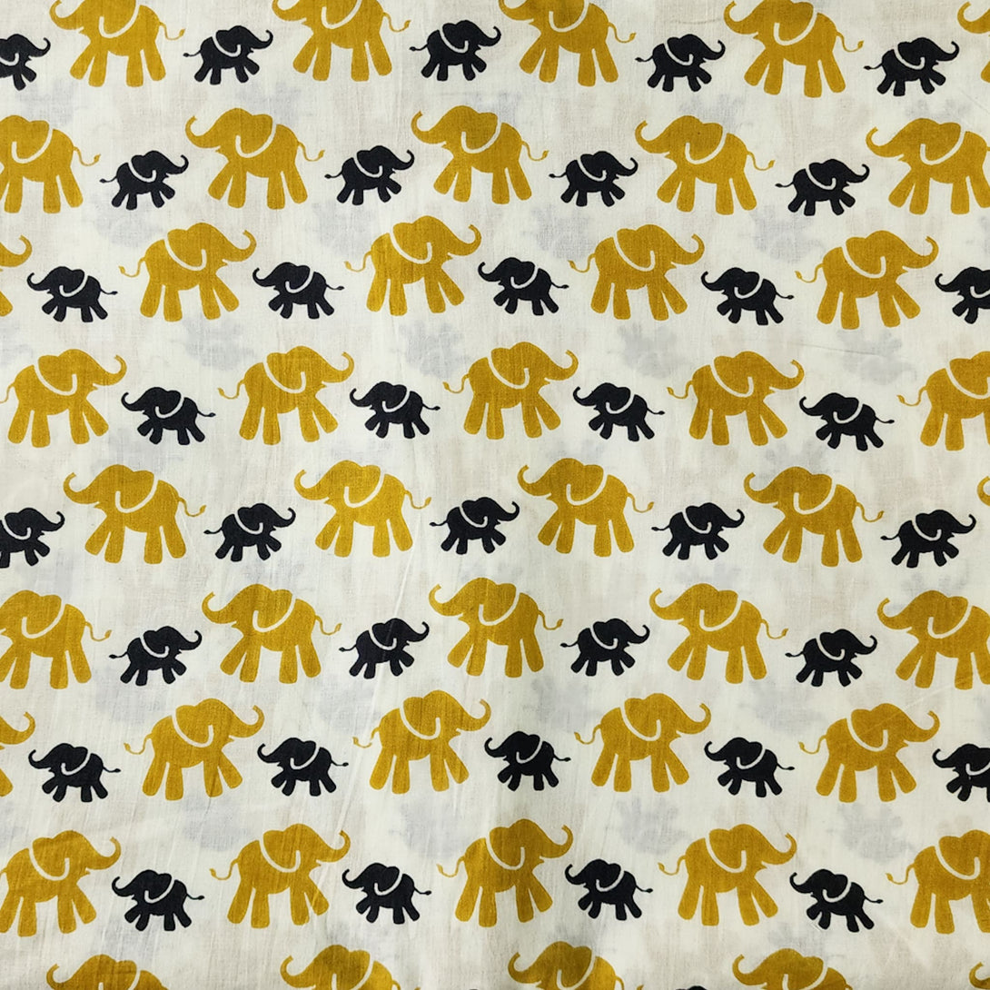Pure Cotton The Elephant Black Mustard Screen Print Fabric