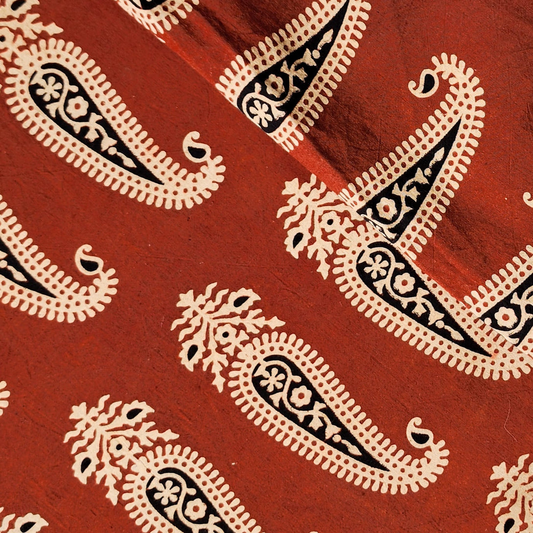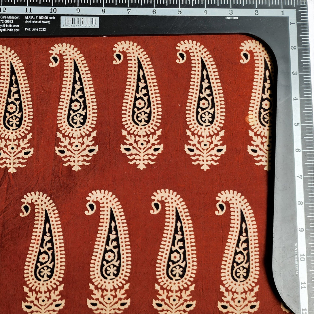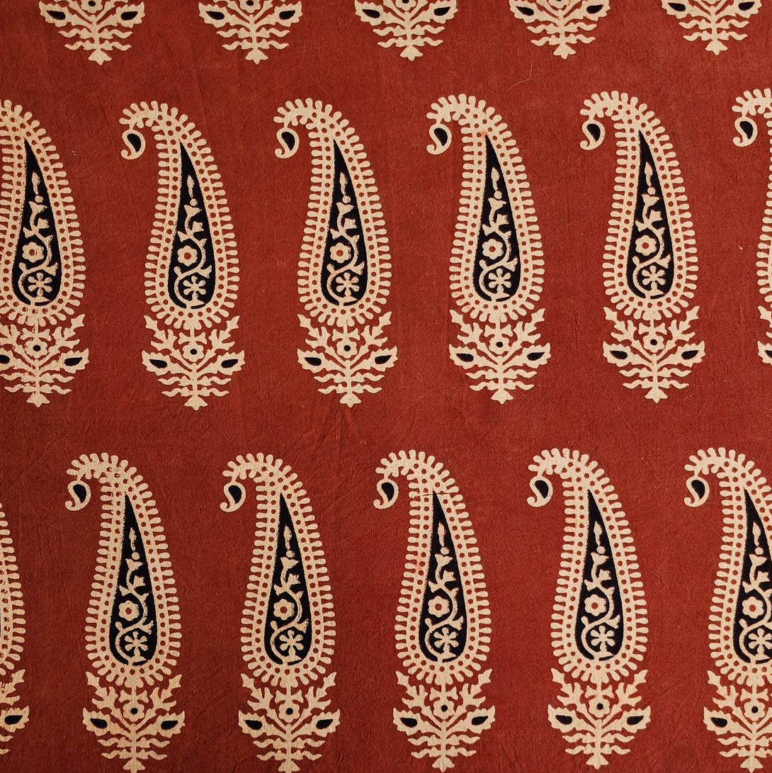 Pure Cotton Vegetable Dyed Red With Black Big Kairi Hand Block Print Fabric