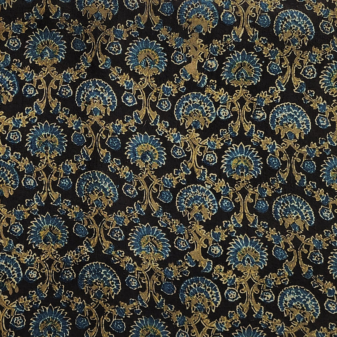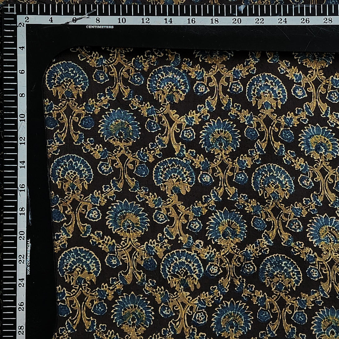 Pure CottonDouble Ajrak Dark Brown With Rust Blue Intricate Flower Design Fabric
