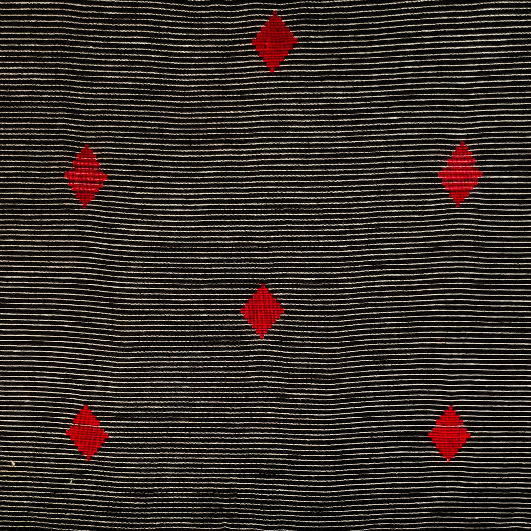 Pure South Cotton Black Stripes With Red Diamond Woven Fabric