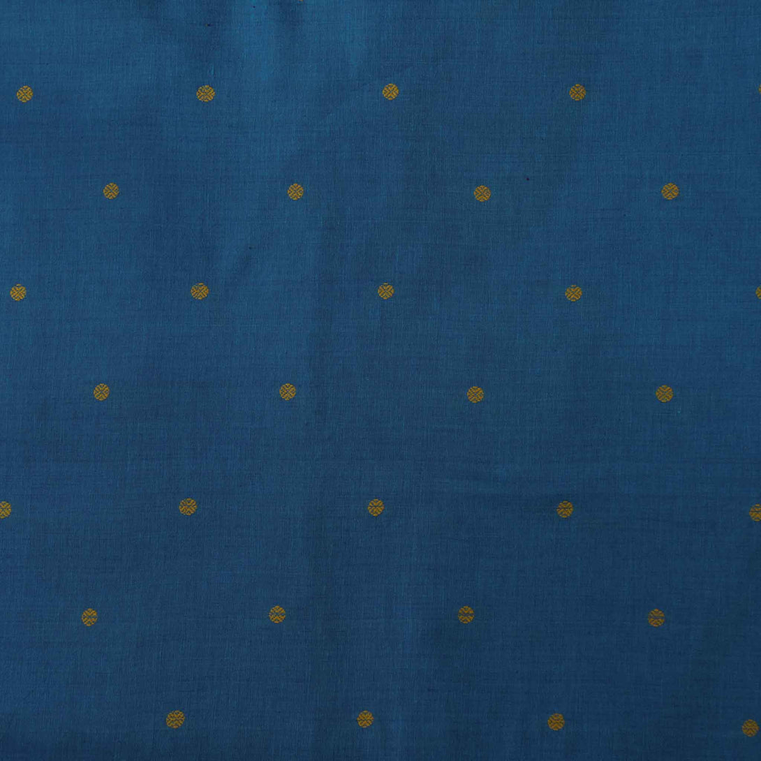 Pure South Cotton Blue With Yellow Polka Woven Fabric