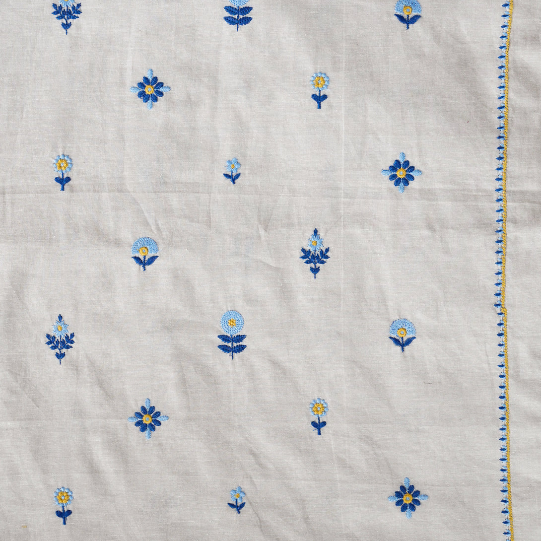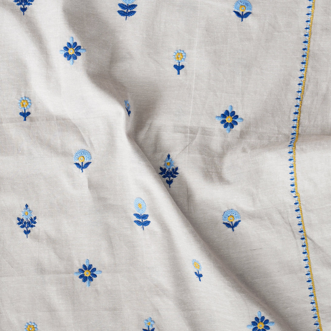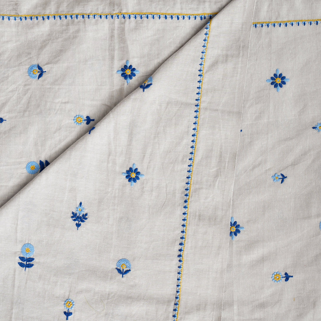 Pure South Cotton Grey And Blue Tiny Flower Motifs With Border Embroidery Fabric