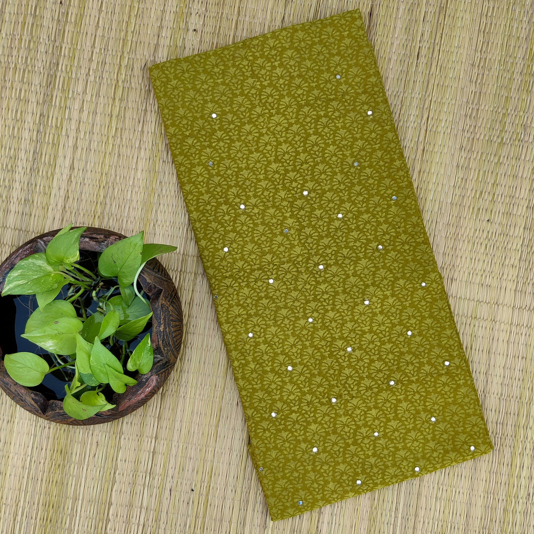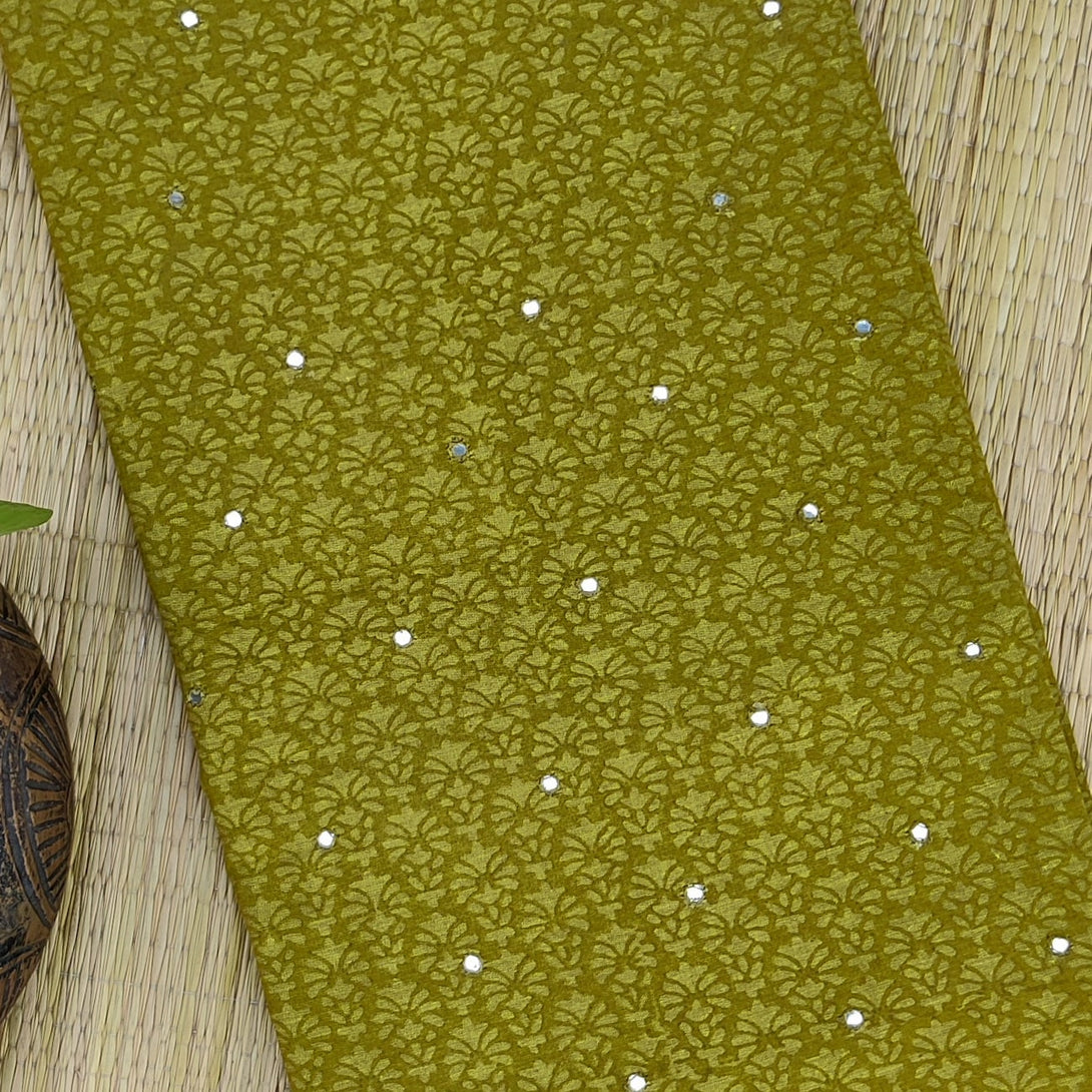 RAJASHREE - Pre Designed Pure Cotton Green Yellow Mirror Work Top Piece