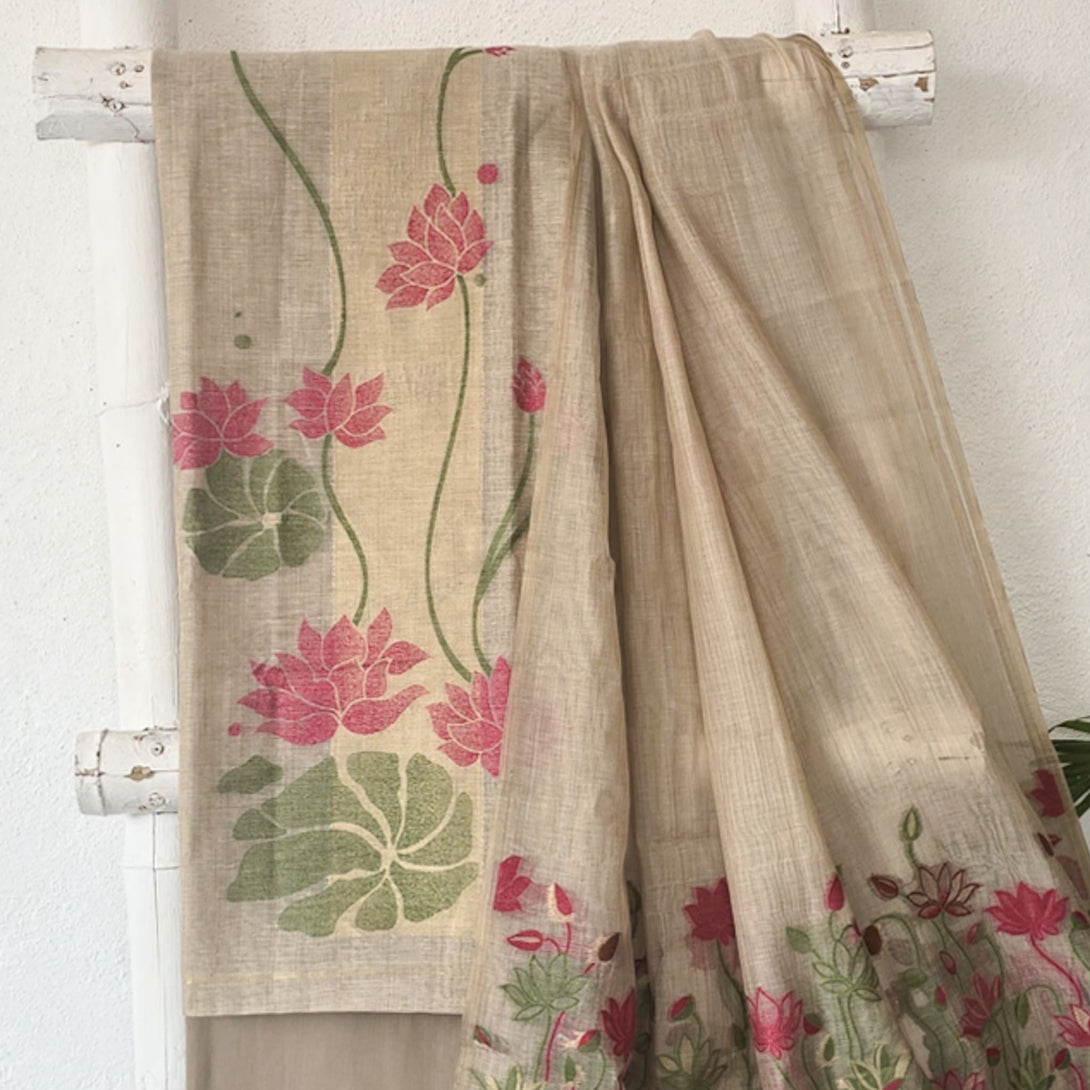 RIDHI-Soft Jute Beige With Pink Lotus Jaal Suit