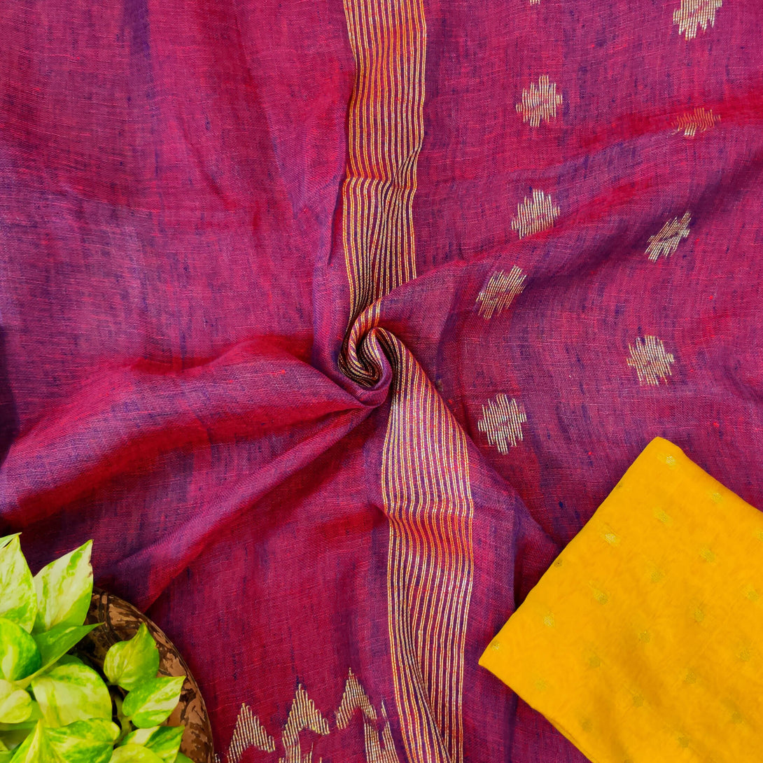 Sanskruti Raag Yaman Linen Saree