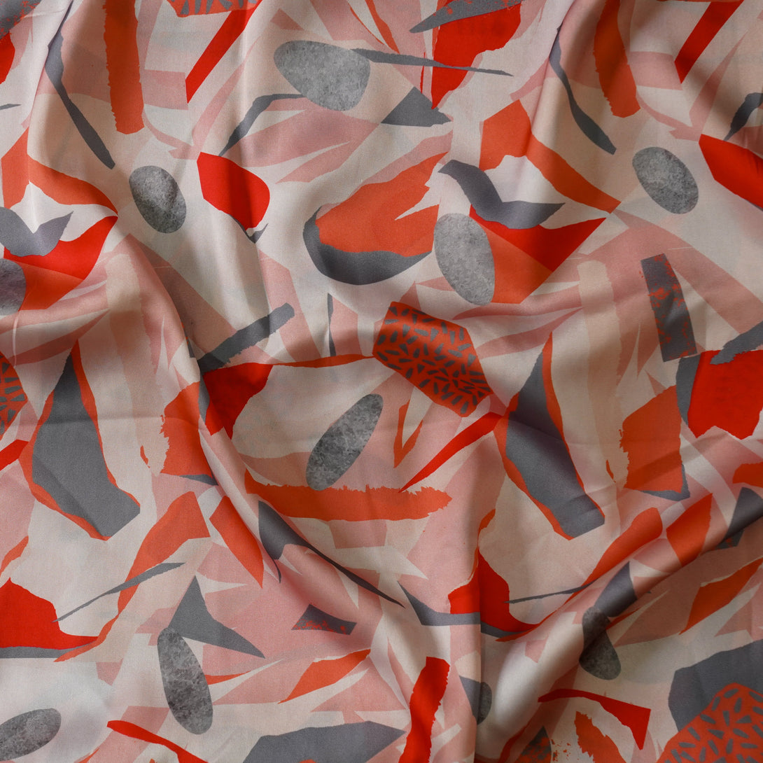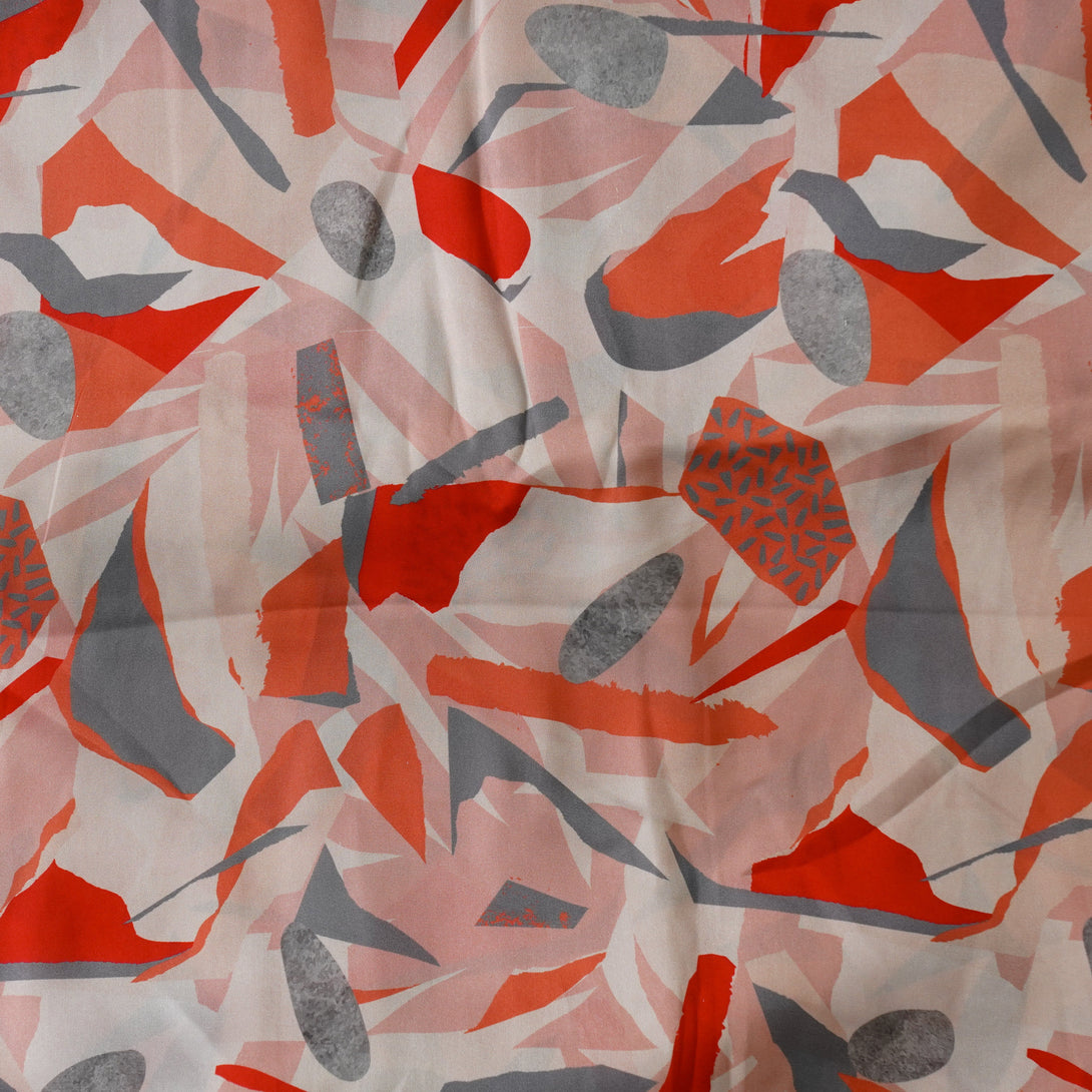 Satin Crepe Cream With Orange And Grey Printed Fabric