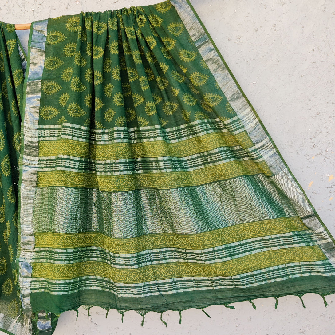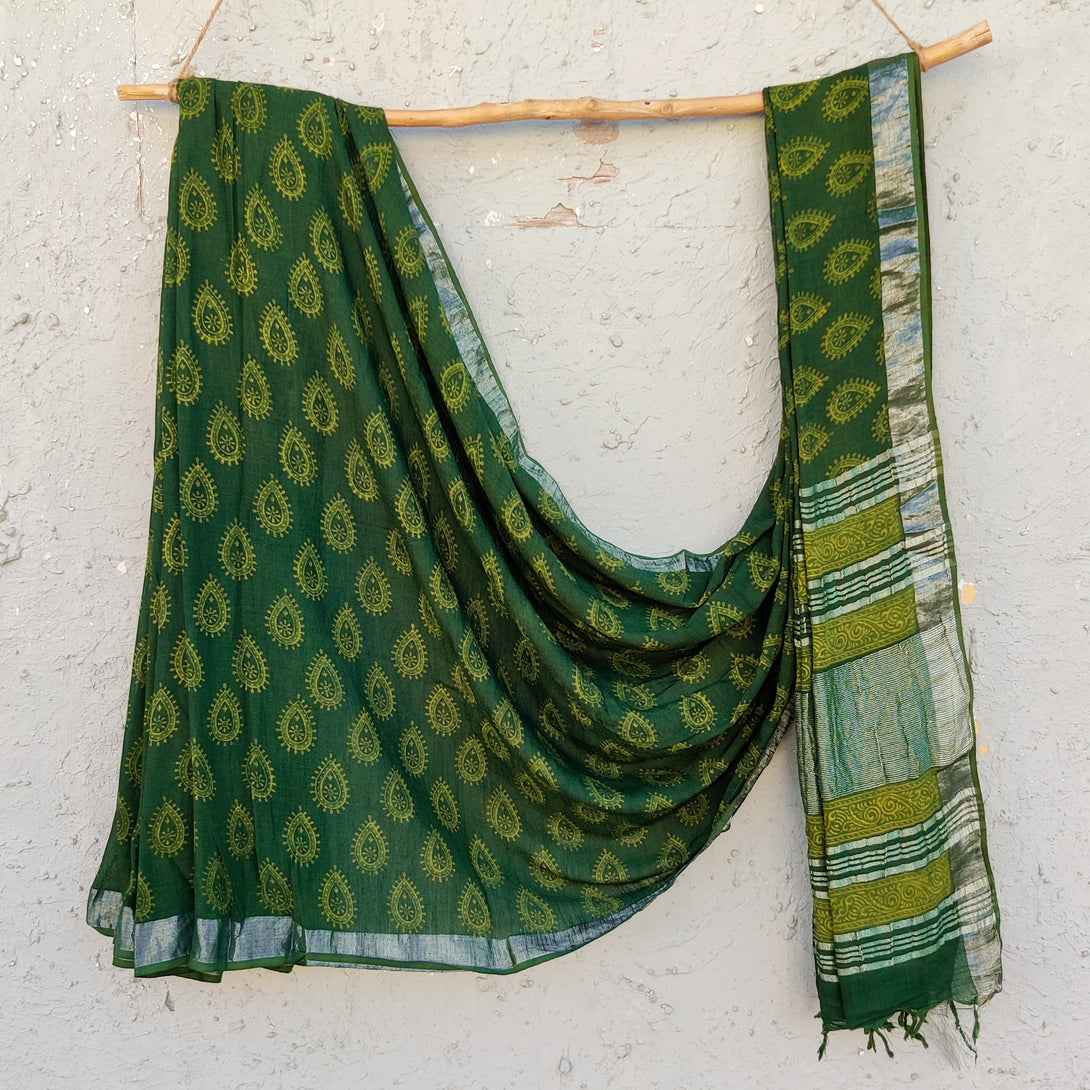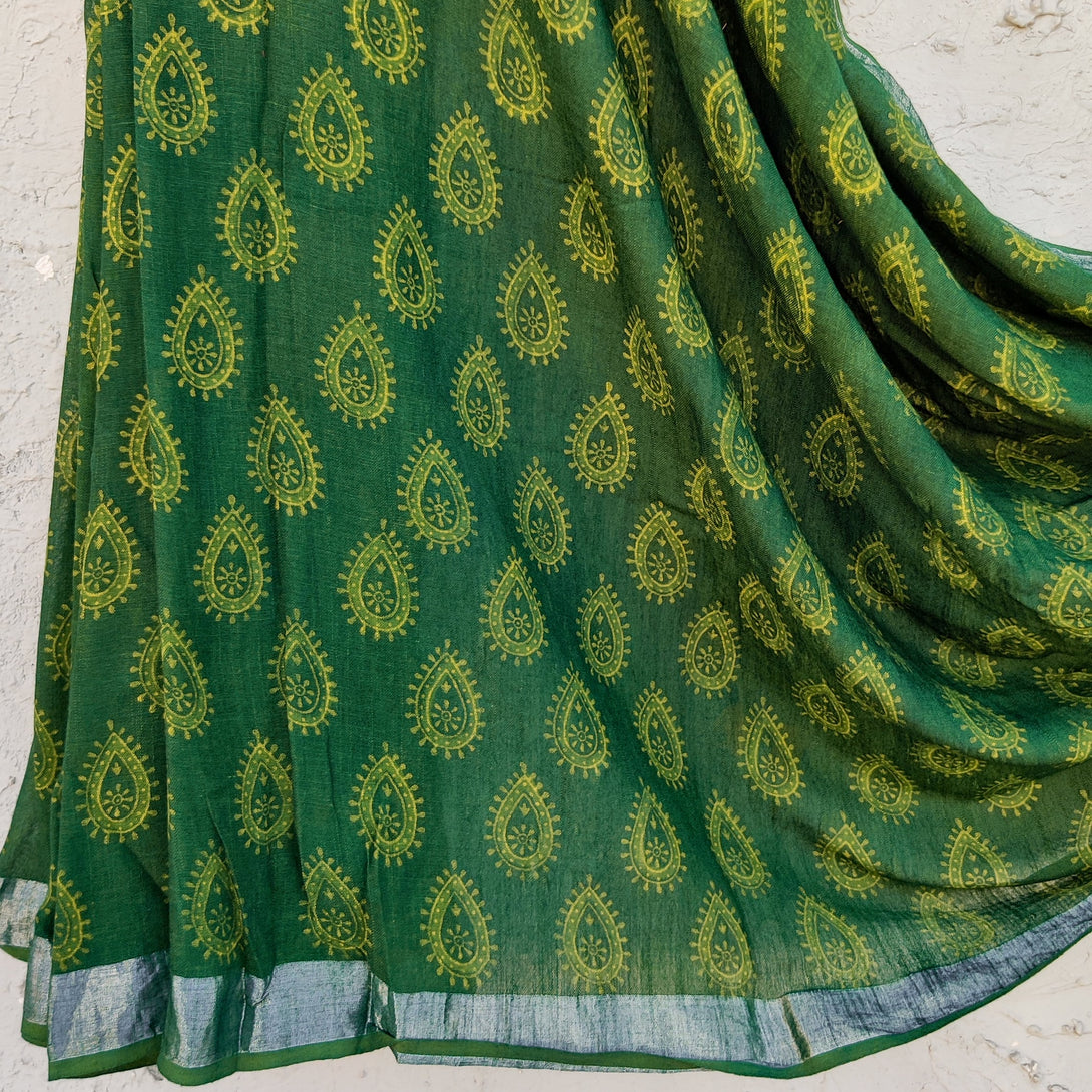 SUKOON - Linen Akola Dabu Green Intricate Droplet Saree
