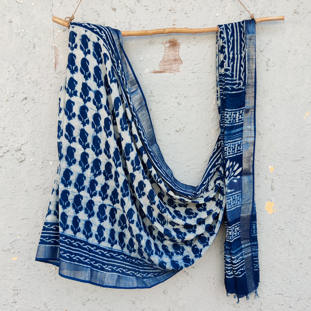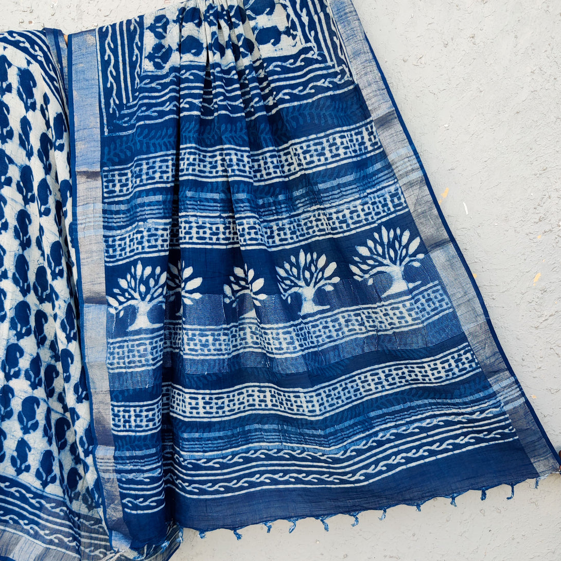 SUKOON-Linen Indigo Kairi Motif Saree