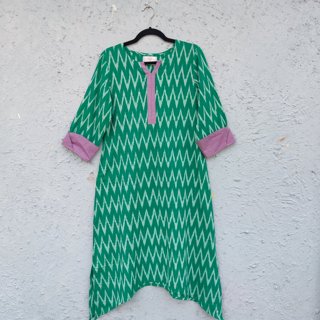 SUPRIYA-Pure Cotton Green Ikkat Everyday Wear Kurta