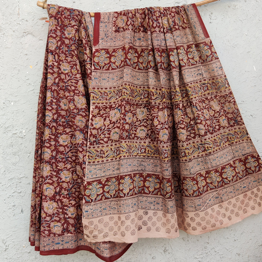 SWARA - Pure Cotton Kalamkari Saree Brown Floral Jaal