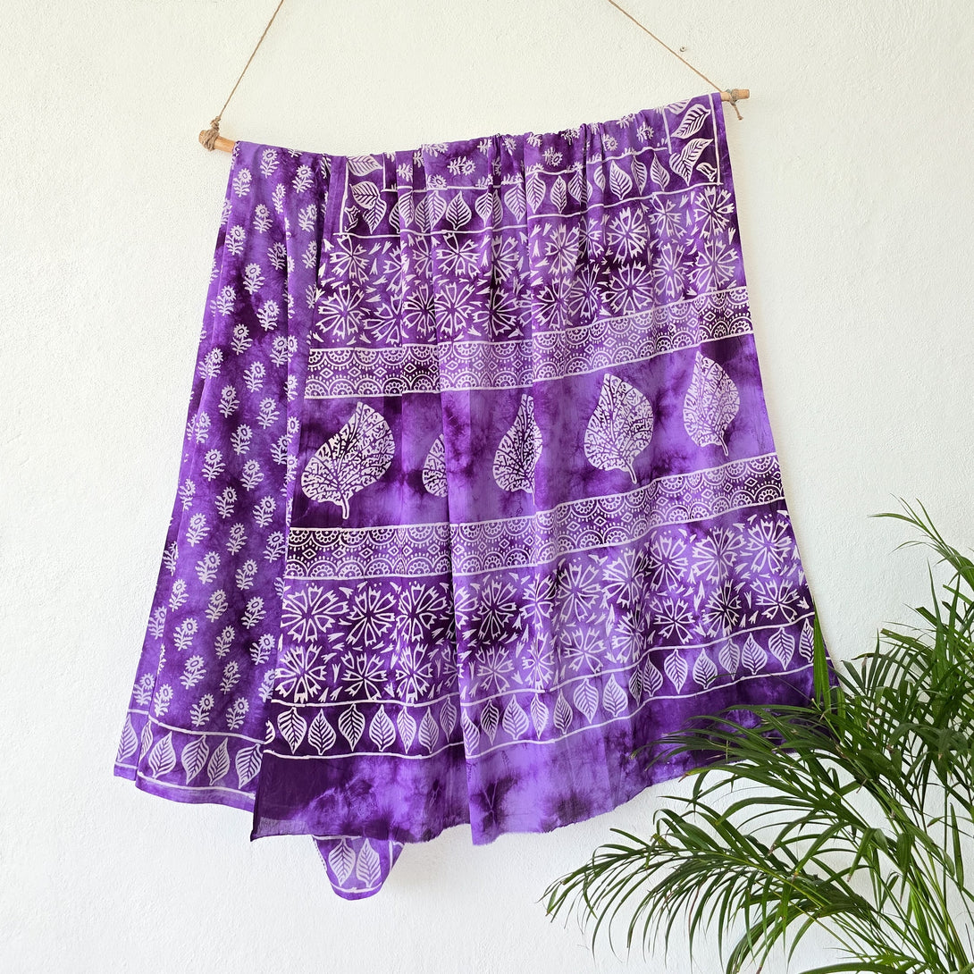 TARA-Pure Cotton Purple Batik Intricate Design Saree