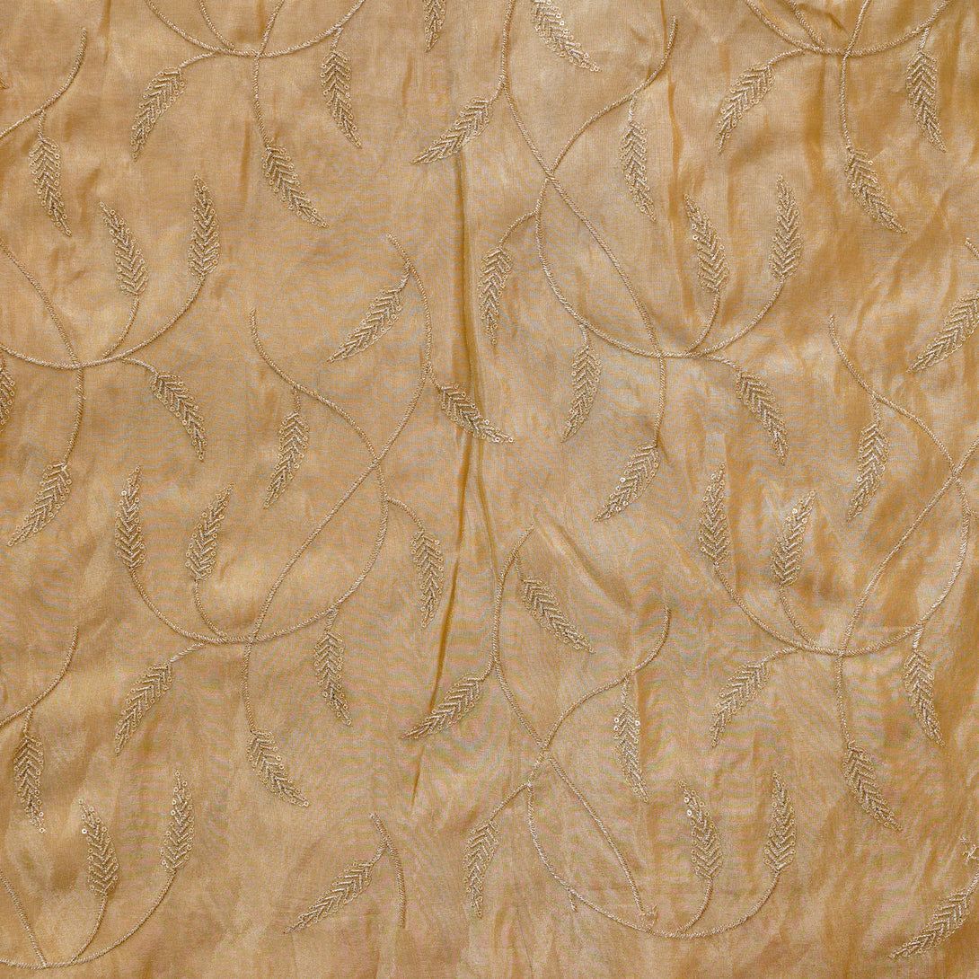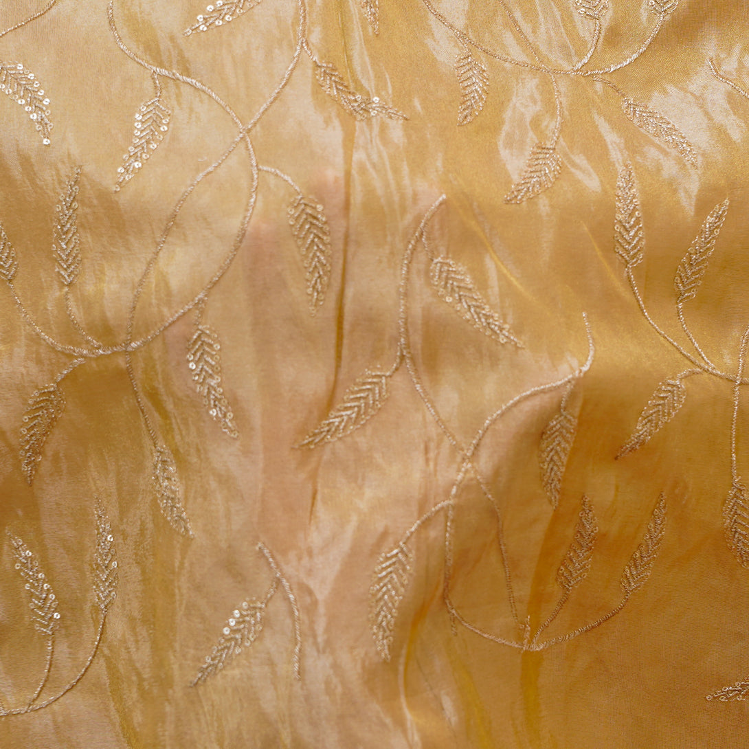 Tissue Golden With Leaves Jaal Embroided Fabric