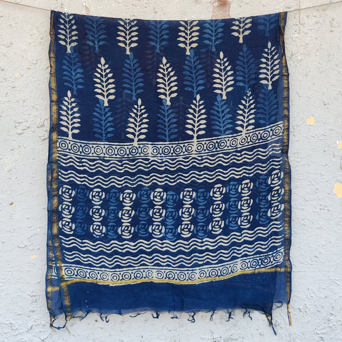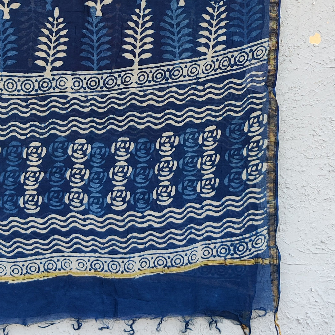 VASUNDARA - Chanderi Indigo Kairi Dupatta Ferns