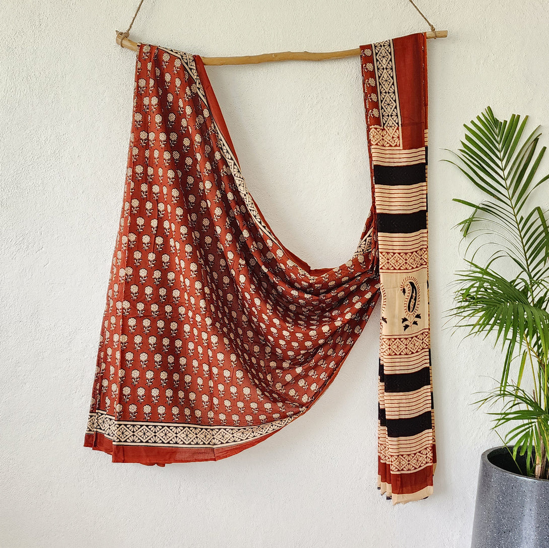 Note: Variation in color and patterns, irregularities in block prints are inherent characteristics of handloom products and are not defects. When a fabric is hand block printed or handwoven there will definitely be variations and irregularities due to dye consistency, pressure applied by block printers at the time of printing, various other environmental, situational and human factors. Handblock / Handloom / Hand dyed products are all 100% handmade, each and every block is hand printed by our artisan one at a time