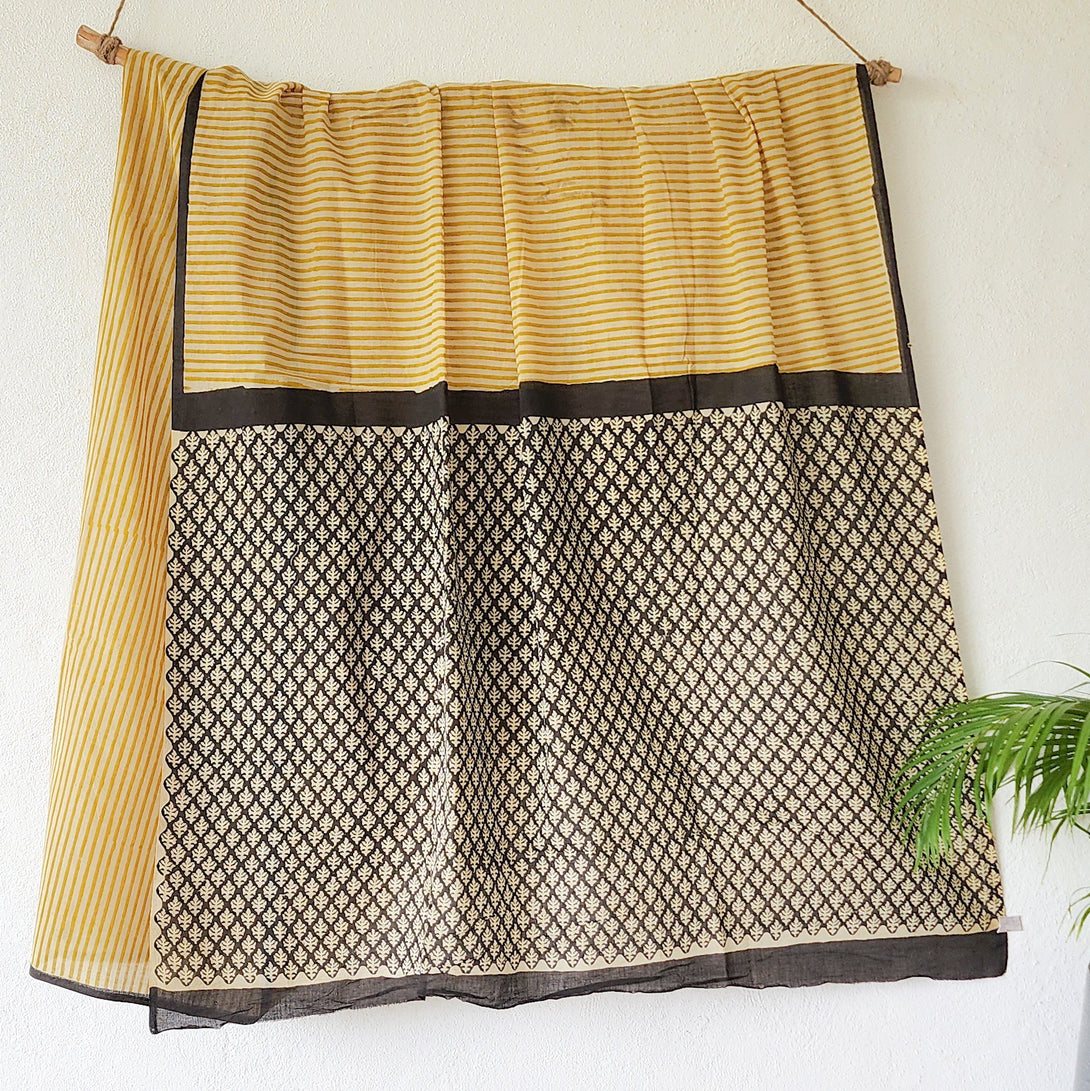 VEERA -Pure Cotton Cream With Mustard Stripes All Over Saree