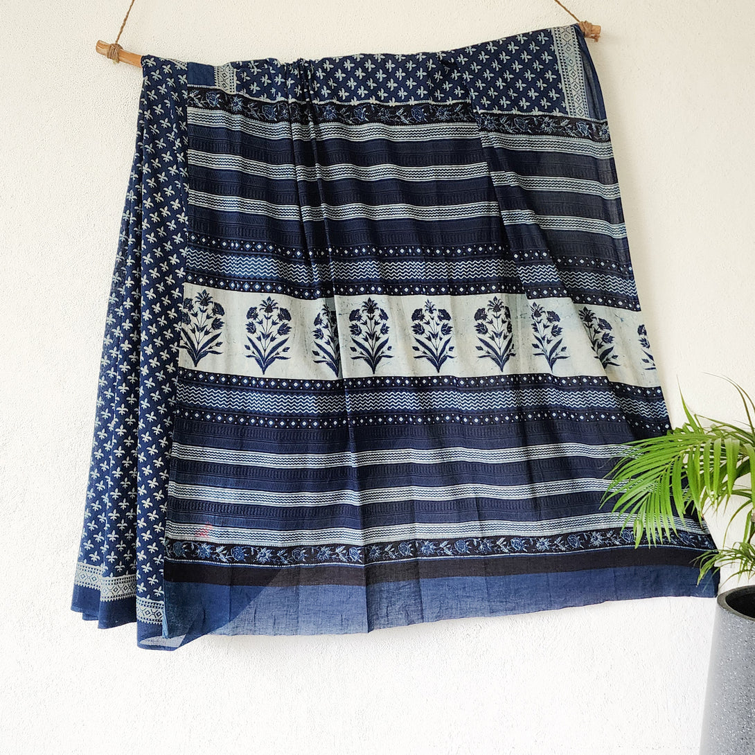 VEERA -Pure Mul Cotton Indigo With Tiny Motif Hand Block Print Saree