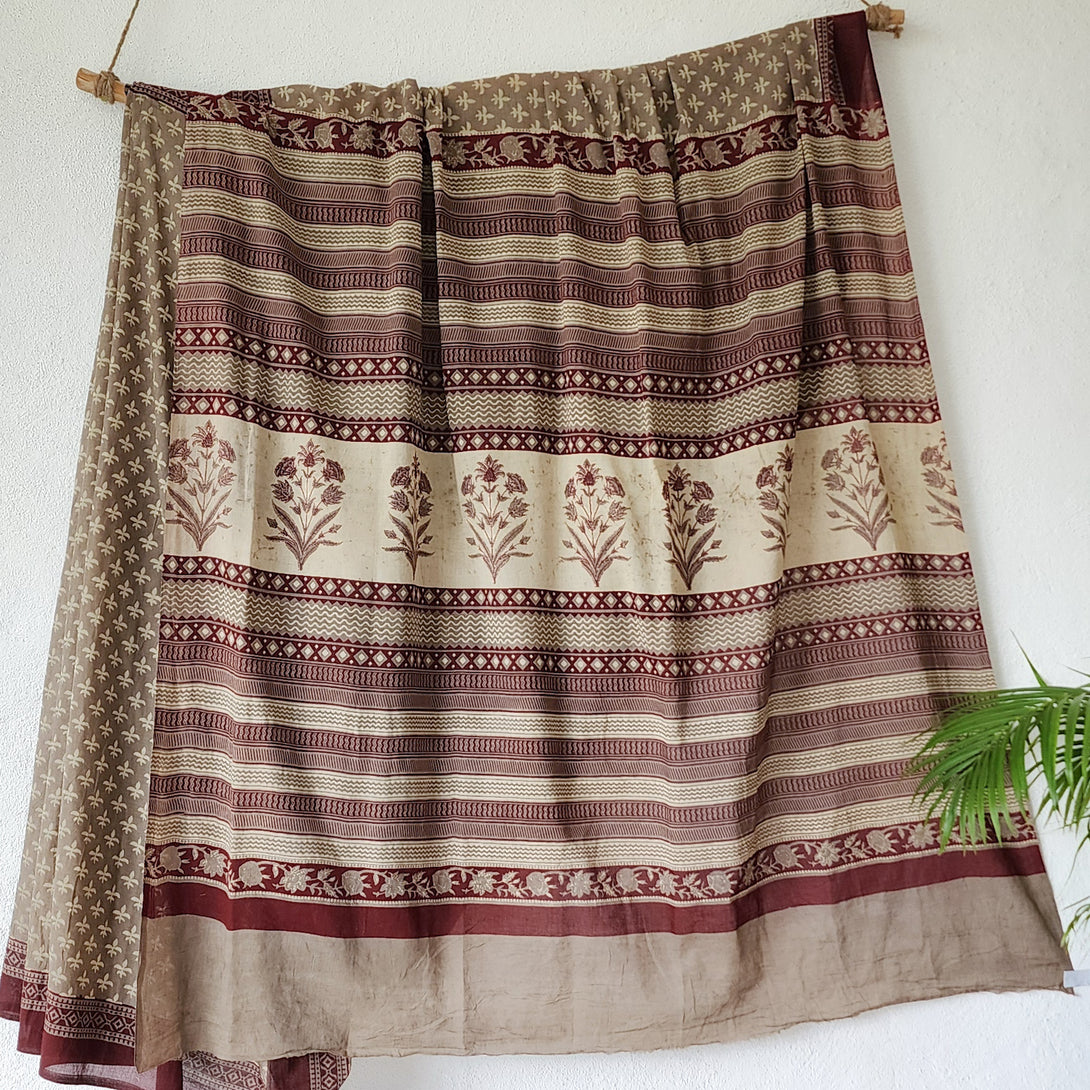 VEERA -Pure Mul Cotton Taupe With Tiny Motif Hand Block Print Saree