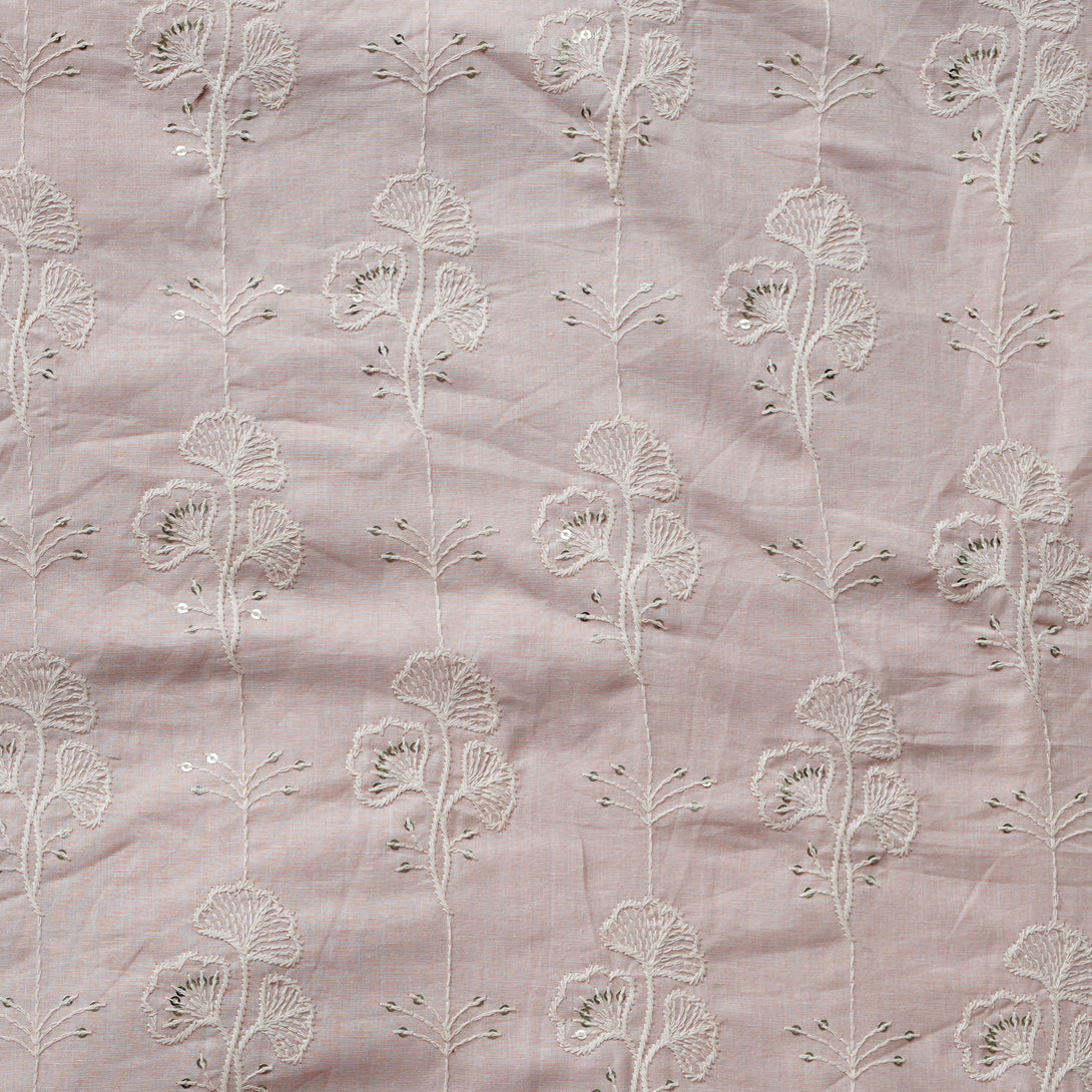 ( Width 41 Inches )Pure Cotton light peach With White Flower Creeper Embroidered And Sequence Work Fabric
