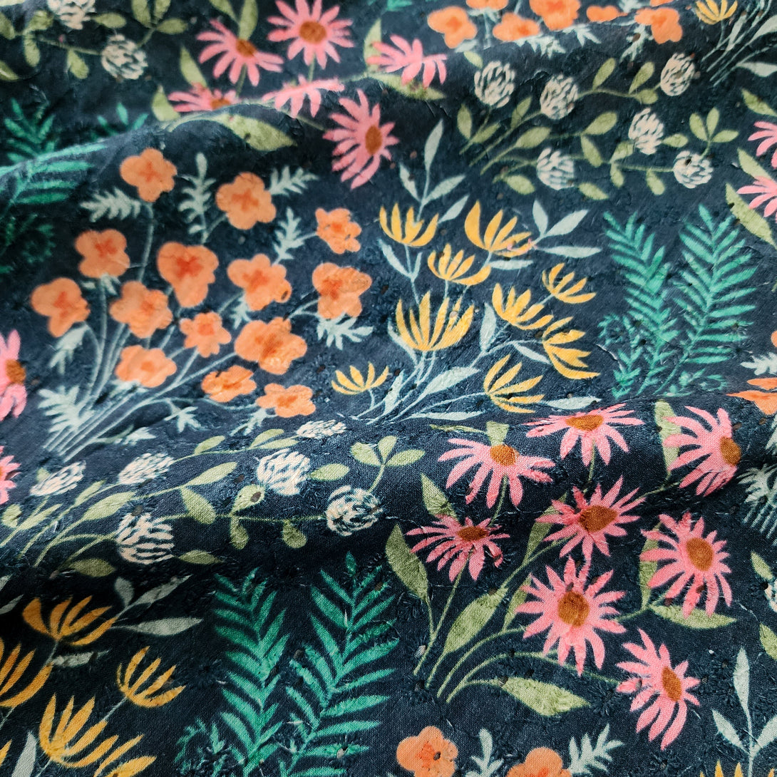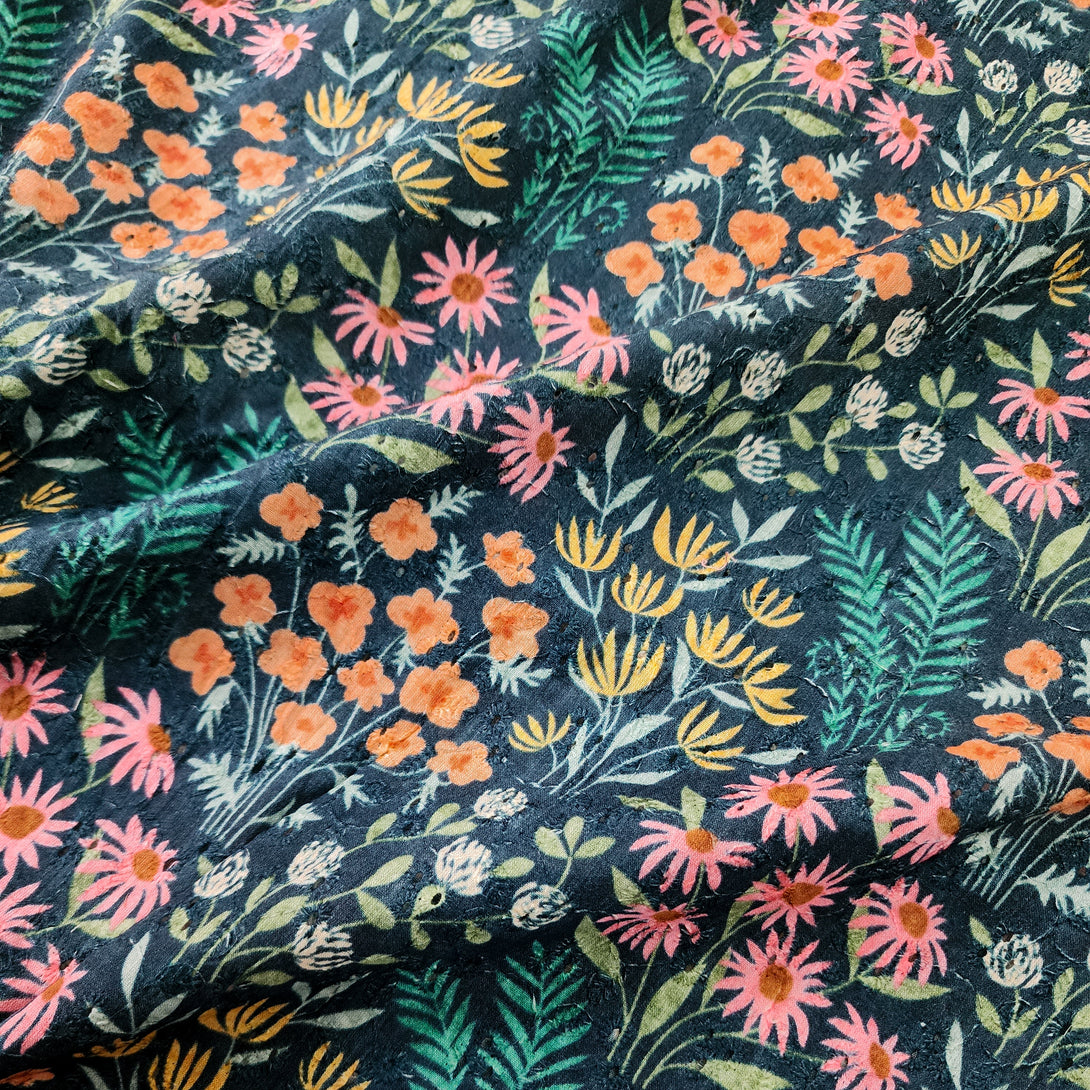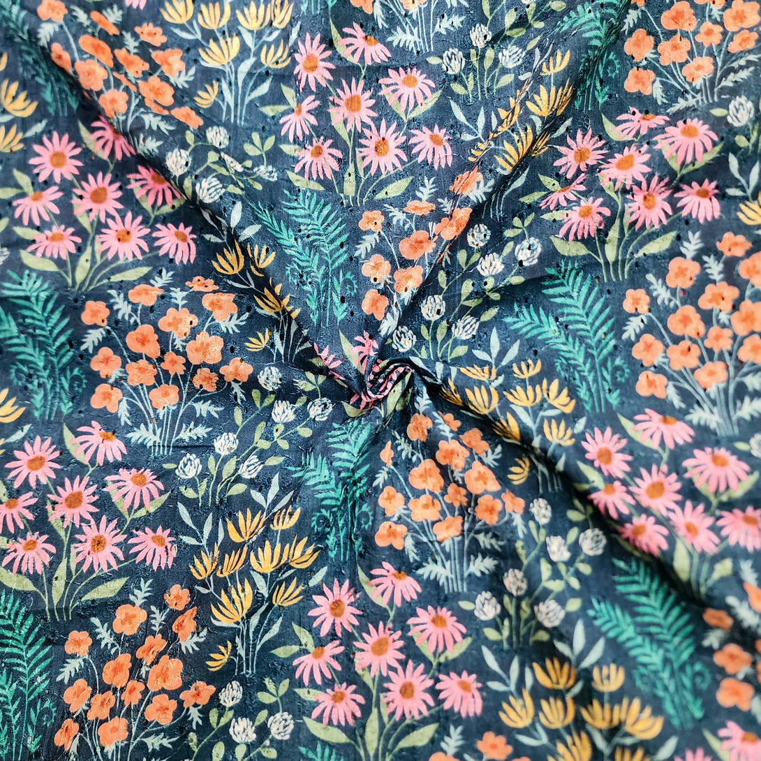 ( Width 44 Inches ) Pure Cotton Hakoba Two Different Tiny Flowers Screen Print Fabric