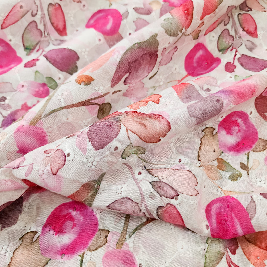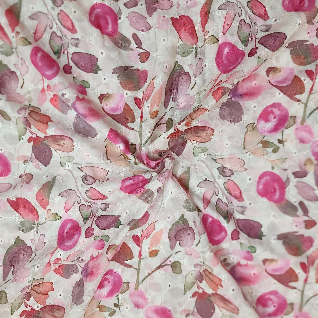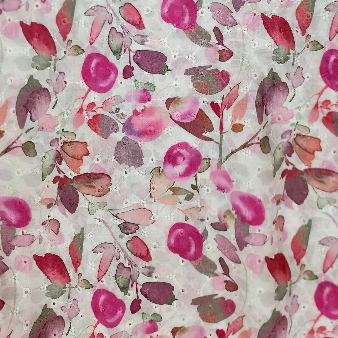 ( Width 42 Inches ) Pure Cotton Hokoba Off White With Floral Flower Jaal Screen Print Fabric
