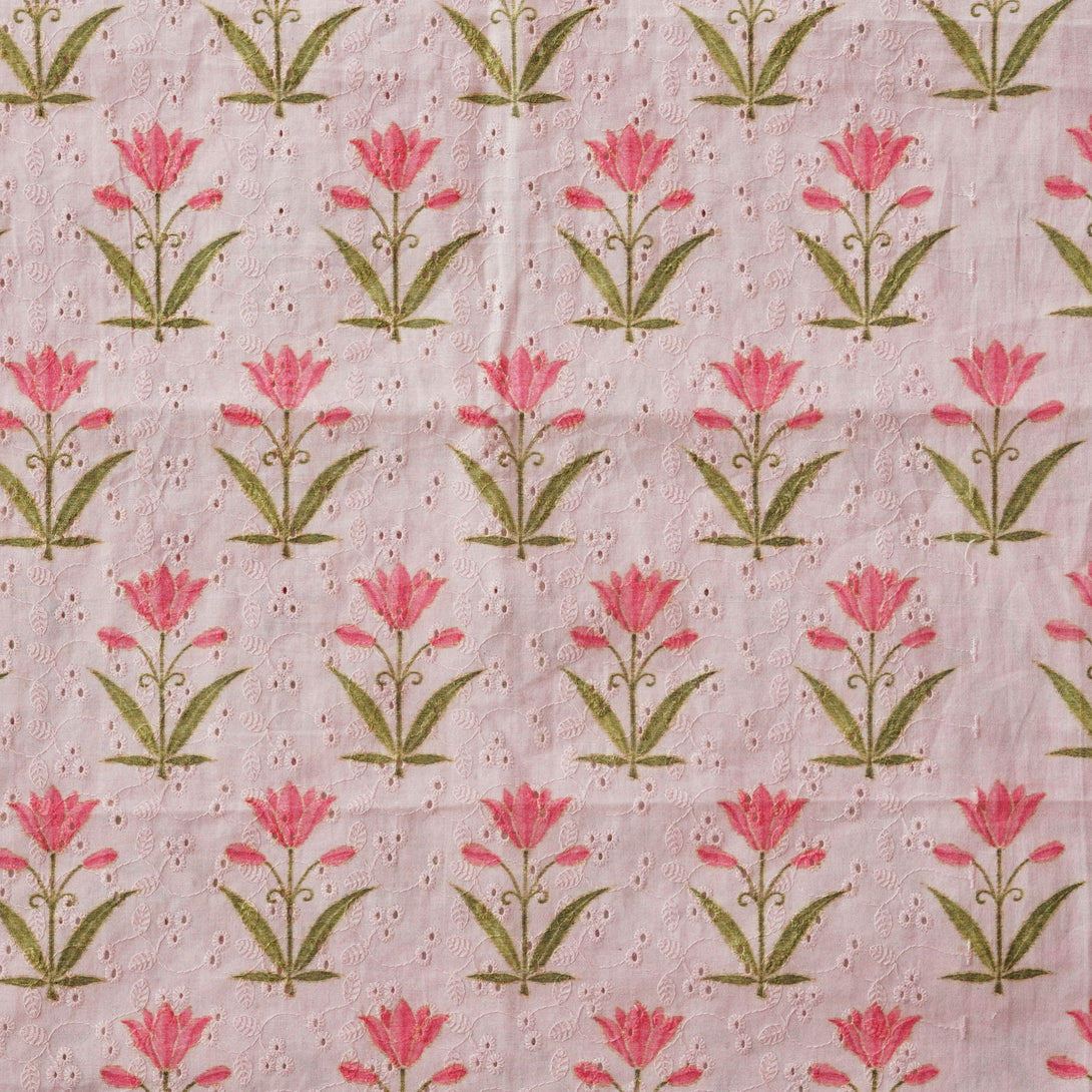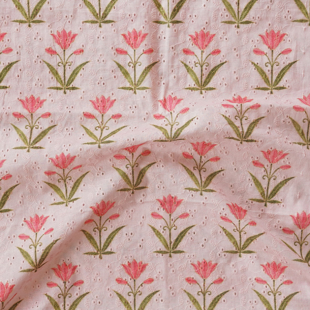(Width 44 Inches) Pure Cotton Hakoba Baby Pink Peach With Pink Flower Digital Print Fabric