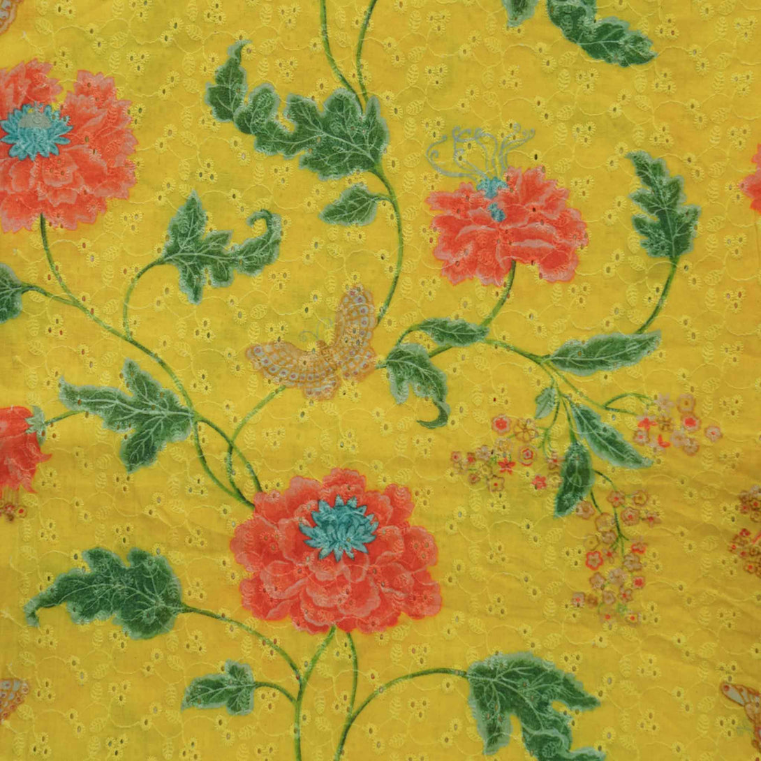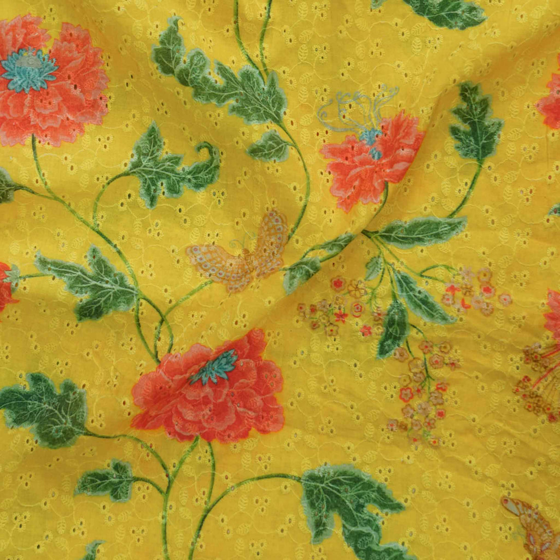 ( Width 44 Inches ) Pure Cotton Hakoba Dark Yellow With Orange With Green Jaal Hand Block Print Fabric