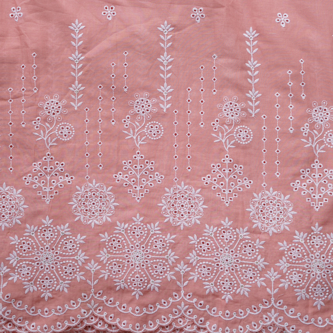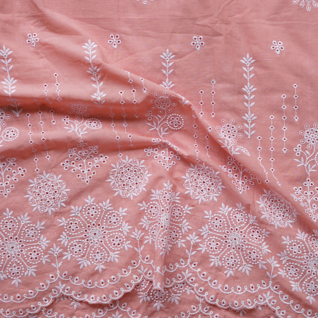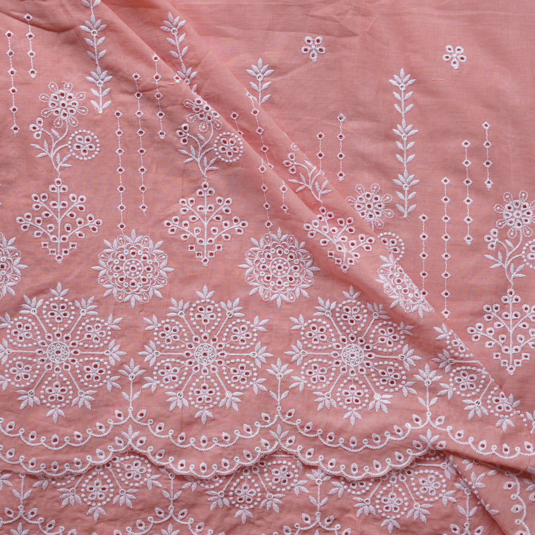 (Width 45 Inches) Pure Cotton Peach With Floral Hakoba Embroidery Fabric